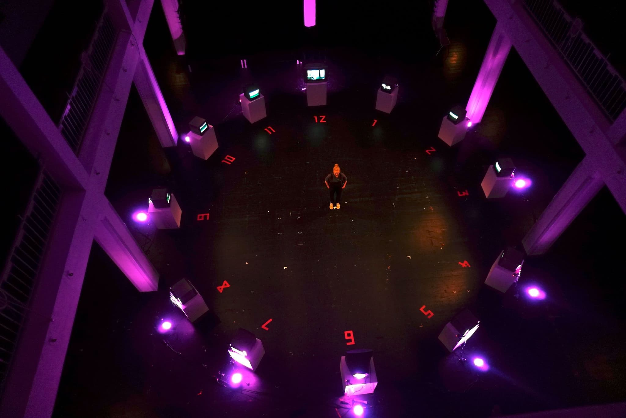 60:60 is a performative video work with 12 tvs. Lenah Flaig filmed herself in 60 different surroundings, moving in slow motion for one hour. 60 hours become 60 minutes. What if an hour was only 60 seconds?