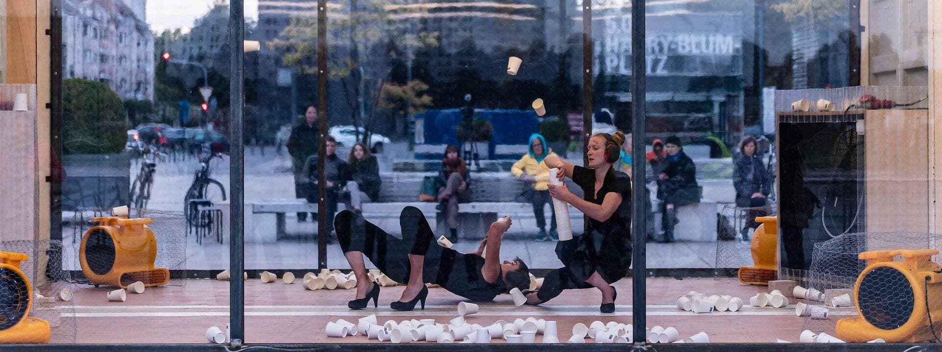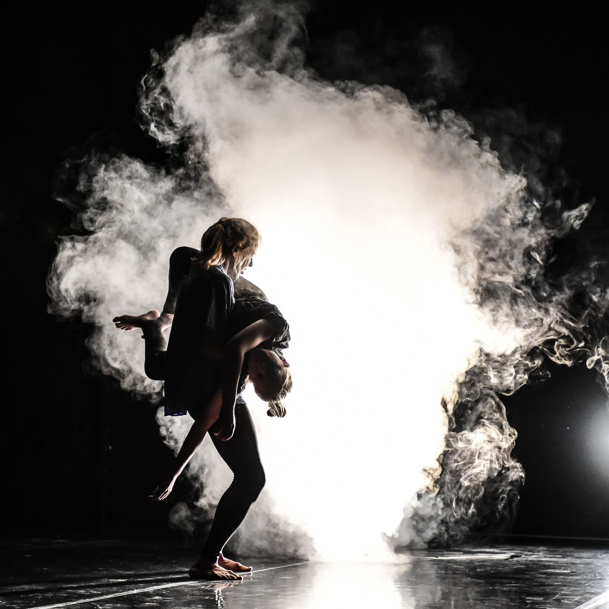 Two women, a voice and the harmless game of life: an anonymous, fictional person, that manifests itself as a nebulous voice, influences the dancers and their actions on stage. The two women approach an abstract philosophical interrogation and go to their physical limits until there is no voice left.